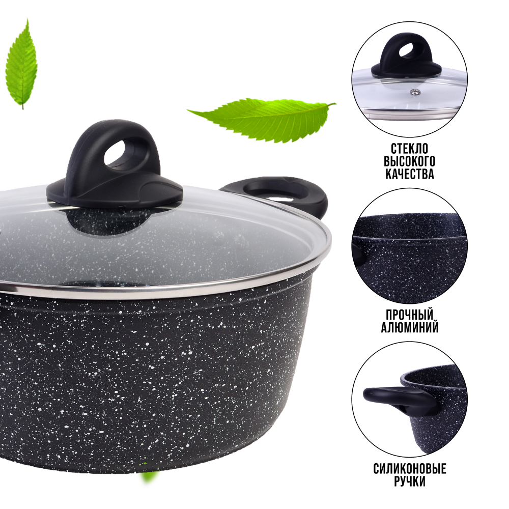 Кастрюля Маруся 7001-26к с индукционным дном со стеклянной крышкой, 5,5 л, цвет черный