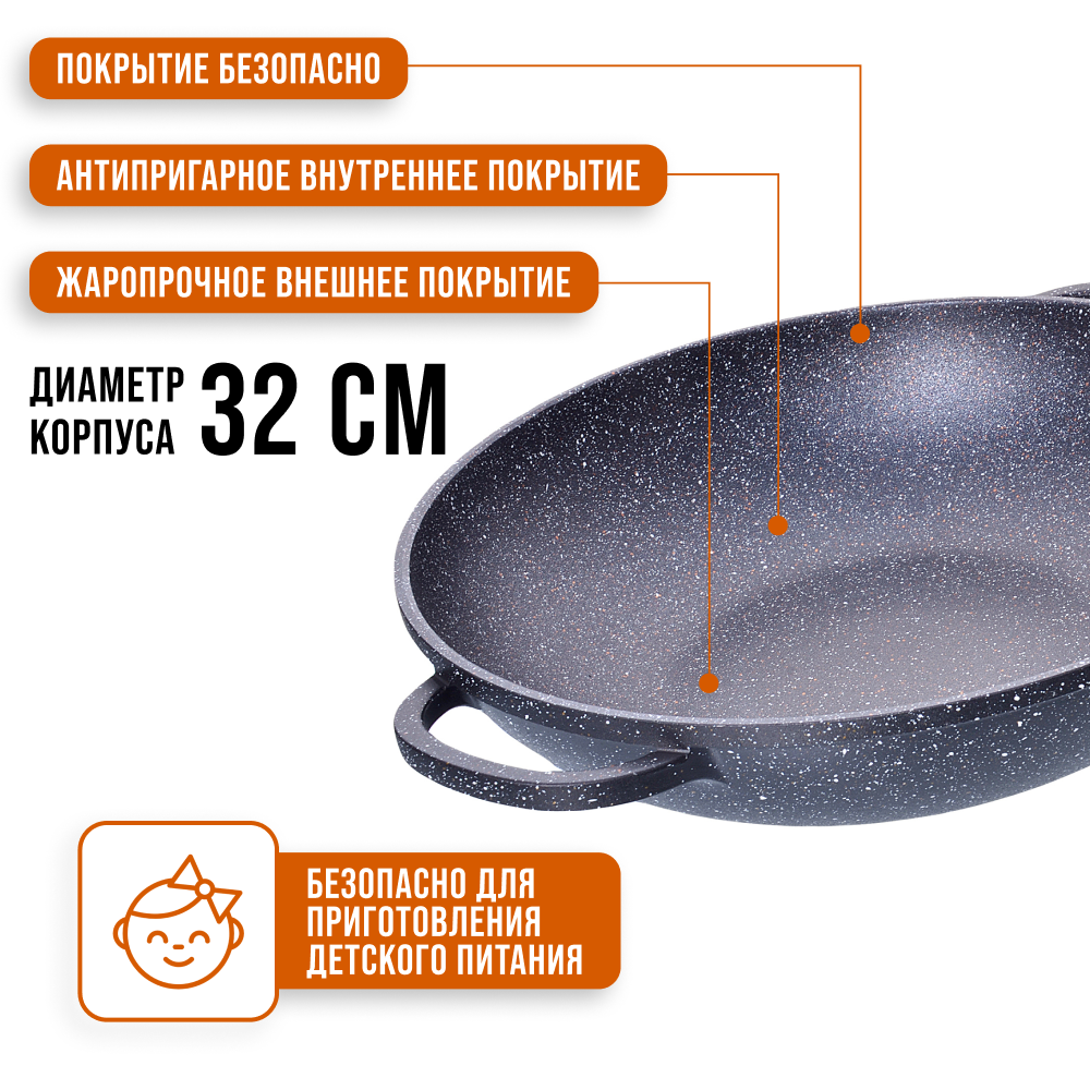 Кастрюля литой алюминий, мрамор, покрытие 4,5 л 32 см информация: