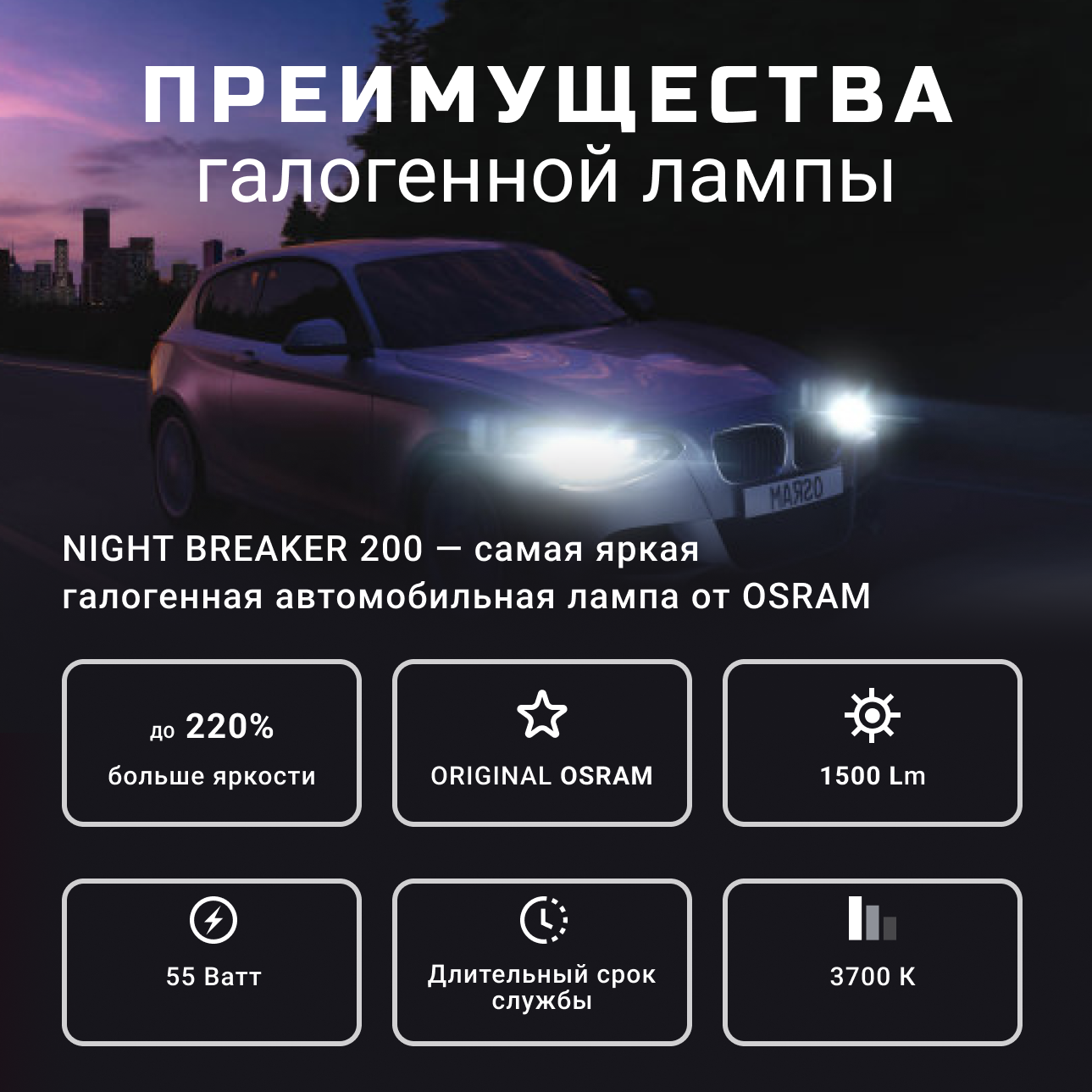 Отзывы на Галогеновые лампы H7 Osram Night Breaker +220% Folding Box 2шт