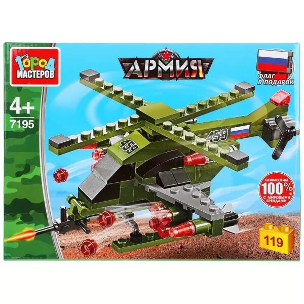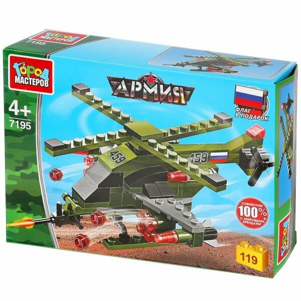10 цен на Конструктор военный вертолет, 119 дет. Город мастеров