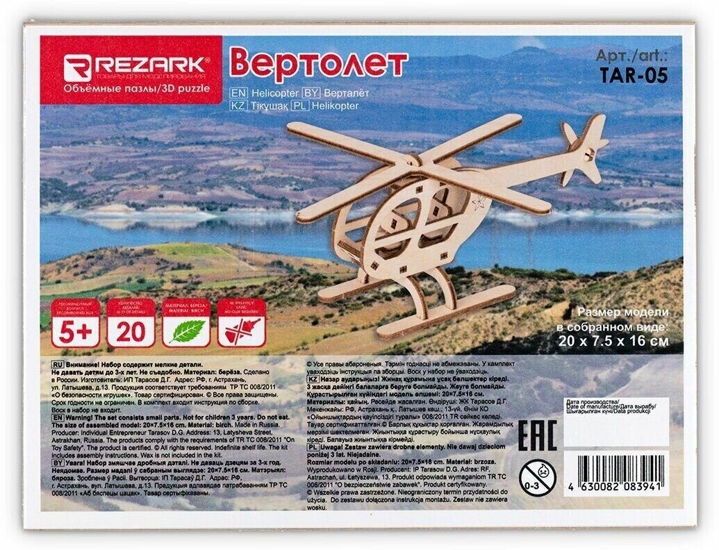 10 цен на Пазлы деревянные 3D "Вертолет", 20х7,5х16см, 5+