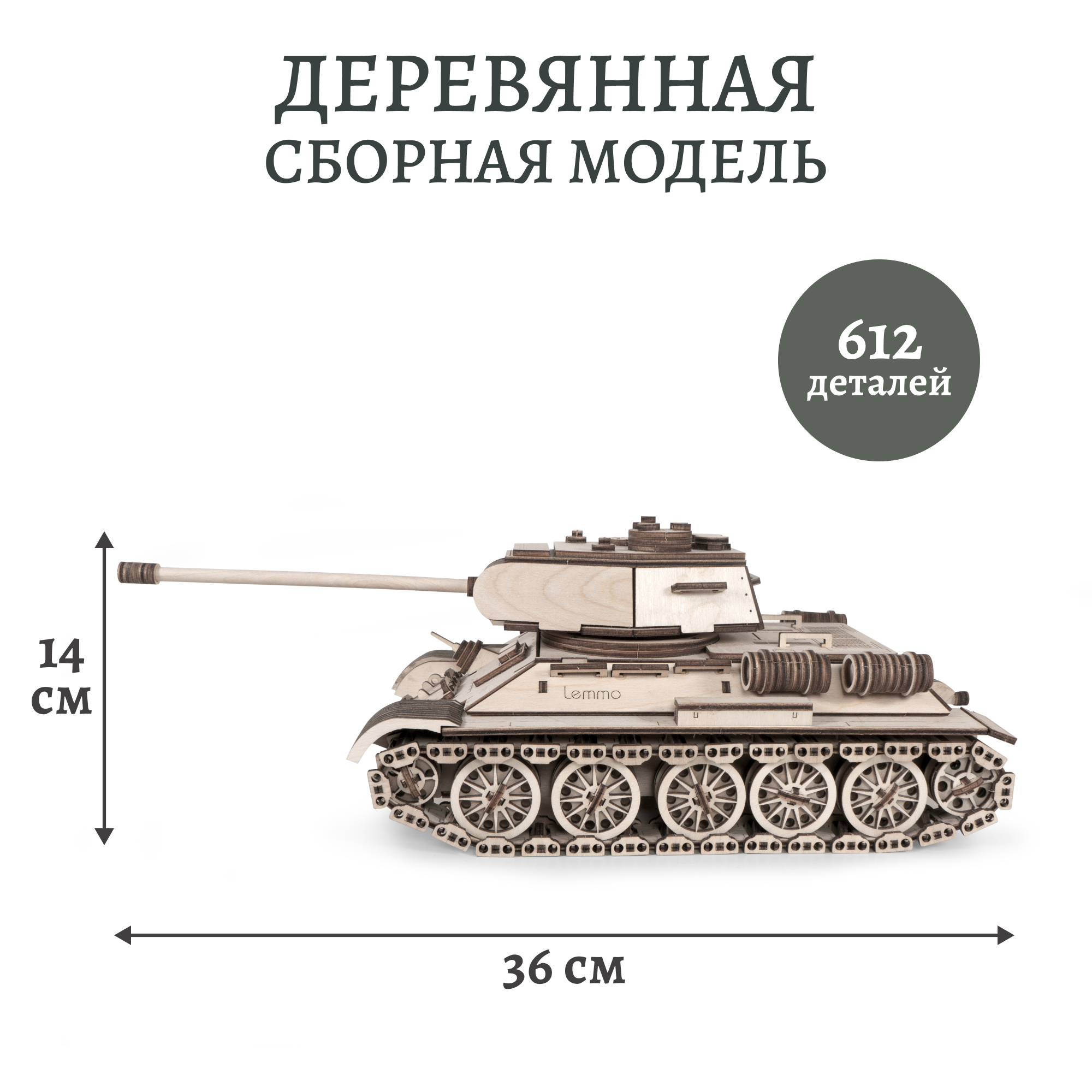 Деревянный конструктор Lemmo Танк Т-34-85, 612 деталей, LM-T34