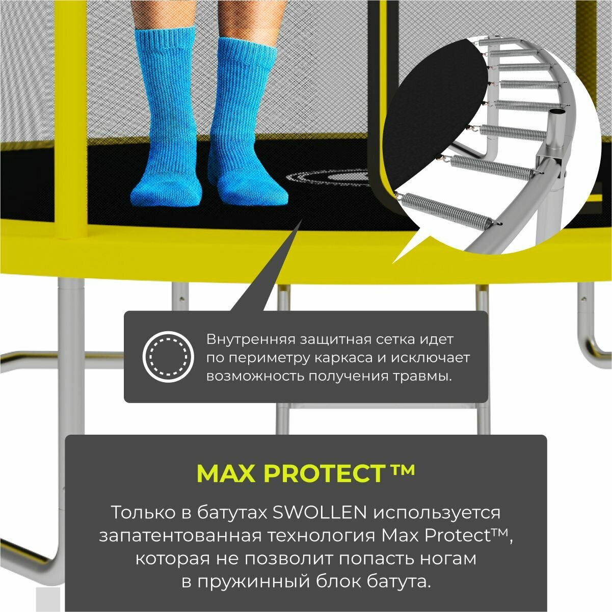 Отзывы на Батут с защитной сеткой SWOLLEN Comfort ZIP 8 FT (244 см) (Yellow) детский, для детей, уличный, для улицы, для дачи