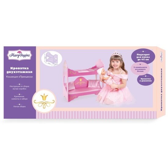 Кроватка для кукол Mary Poppins 67410 двухэтажная Принцесса информация: