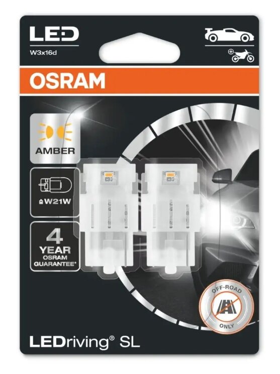 Отзывы на Светодиодная лампа OSRAM WY21W 12V-LED (WX3x16d) 1,3W Amber LEDriving SL 3 пок.
