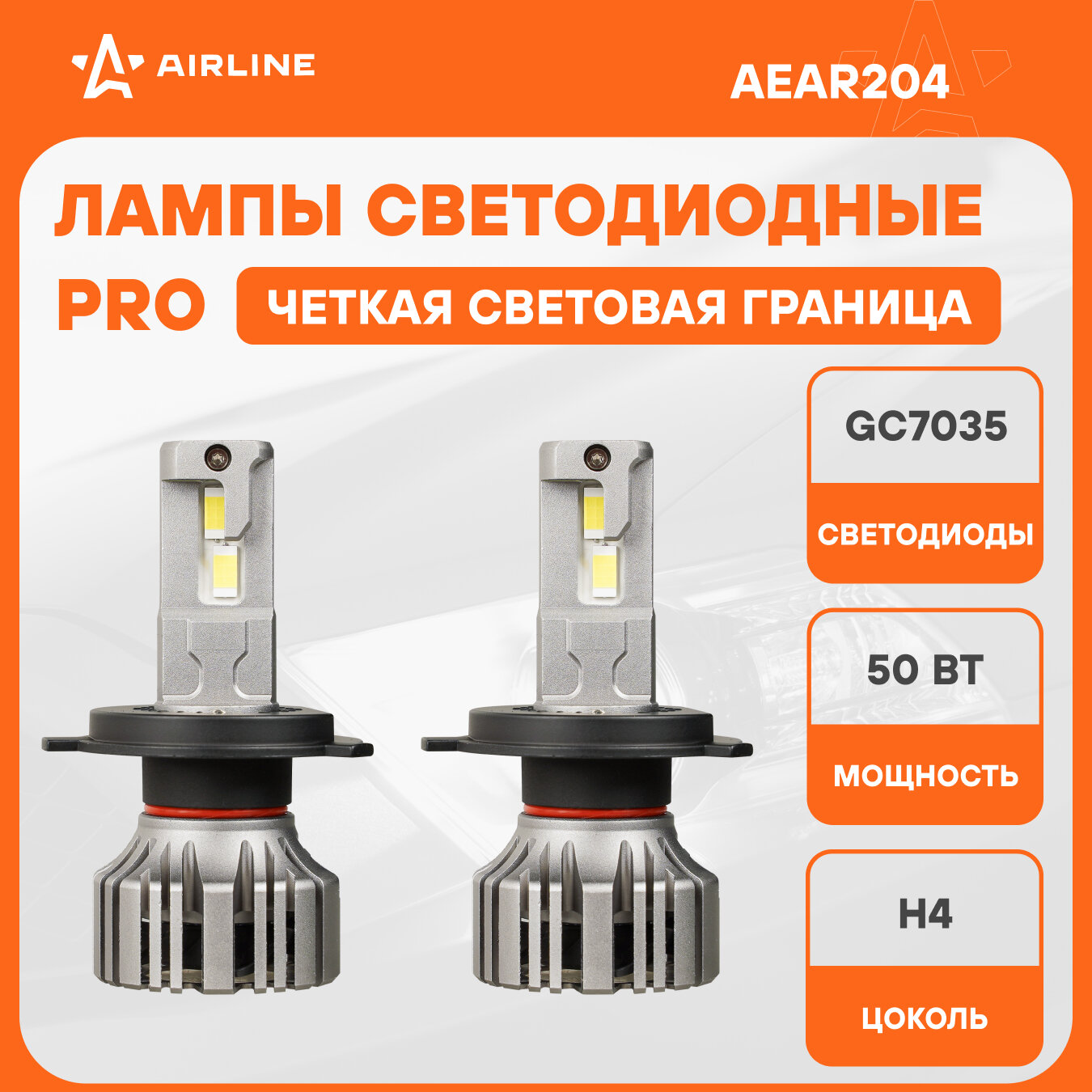 10 цен на Лампа светодиодная, H4, 50Вт, 9200Лм (4600Лм x 2), 6000К (Белый), 12/24В, для рефлекторной/линзованной оптики, комплект 2 шт, PRO AEAR204 AIRLINE