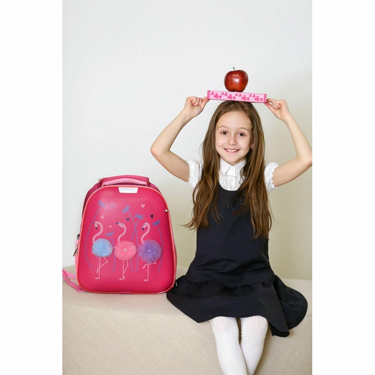 Ранец №1 School для девочки, Basic, Flamingo, 2 отделения, ортопедическая спинка, эко кожа, светящийся кант 8 695 ₽