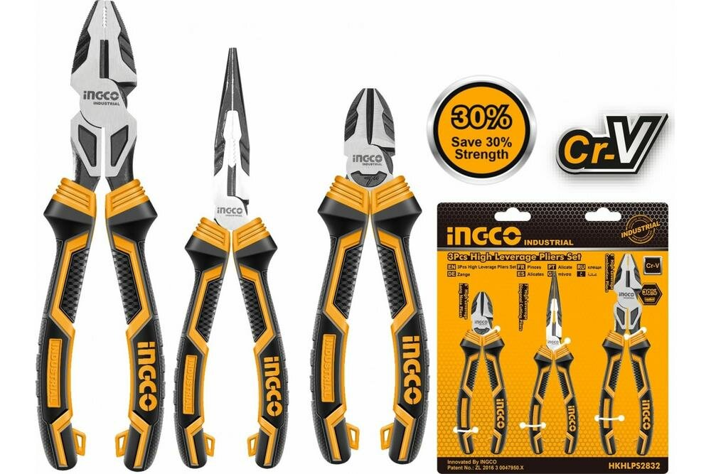 10 цен на Набор плоскогубцев Ingco усиленные 3 пред. Industrial HKHLPS2832