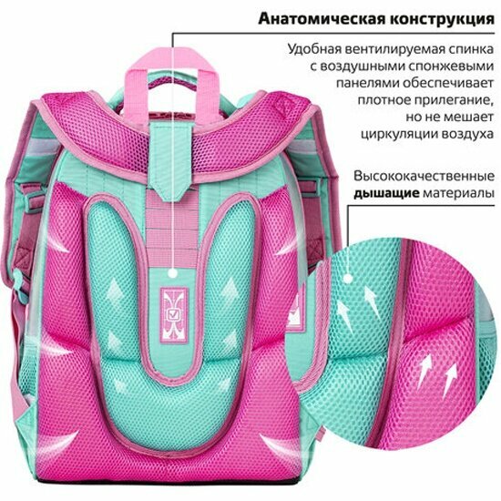 Ранец для первоклассника ортопедический Brauberg для девочки, Shiny, 2 отделения "Magic unicorn" 36х28х14 см (270694)