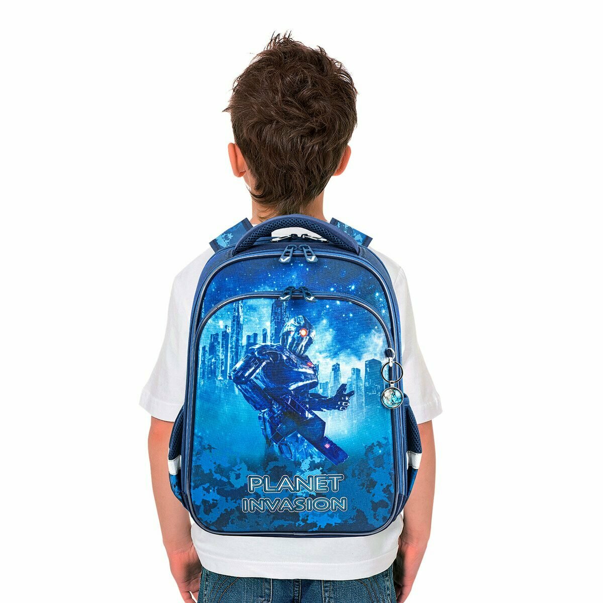 Ранец школьный Brauberg Quadro "Planet invasion", 37х28х18см, 3 отделения, с брелком (270604) информация:
