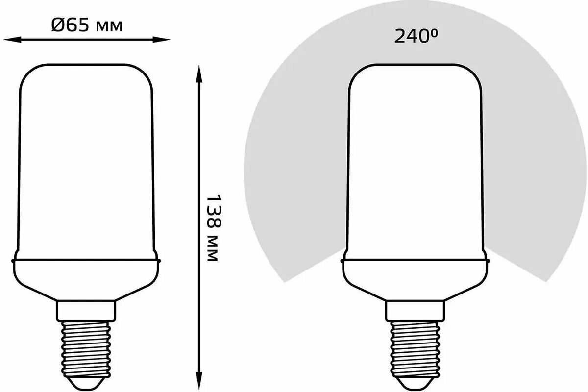Светодиодная лампа Gauss T65 5W 20-80lm 1500K E14 Flame LED 1/10/100 157401105