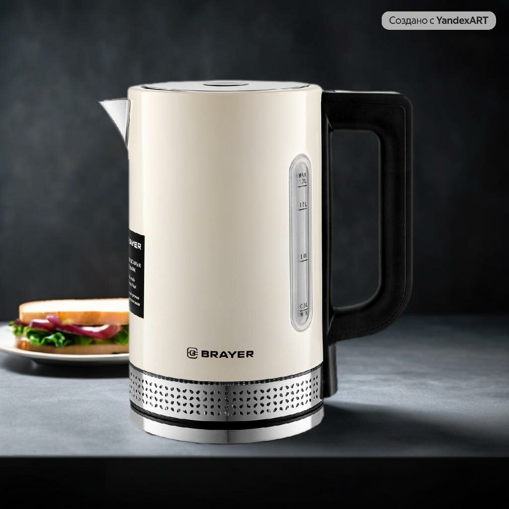 Чайник электрический 1,7 литра с регулировкой температурой, BRAYER BR1068, бежевый/черный информация: