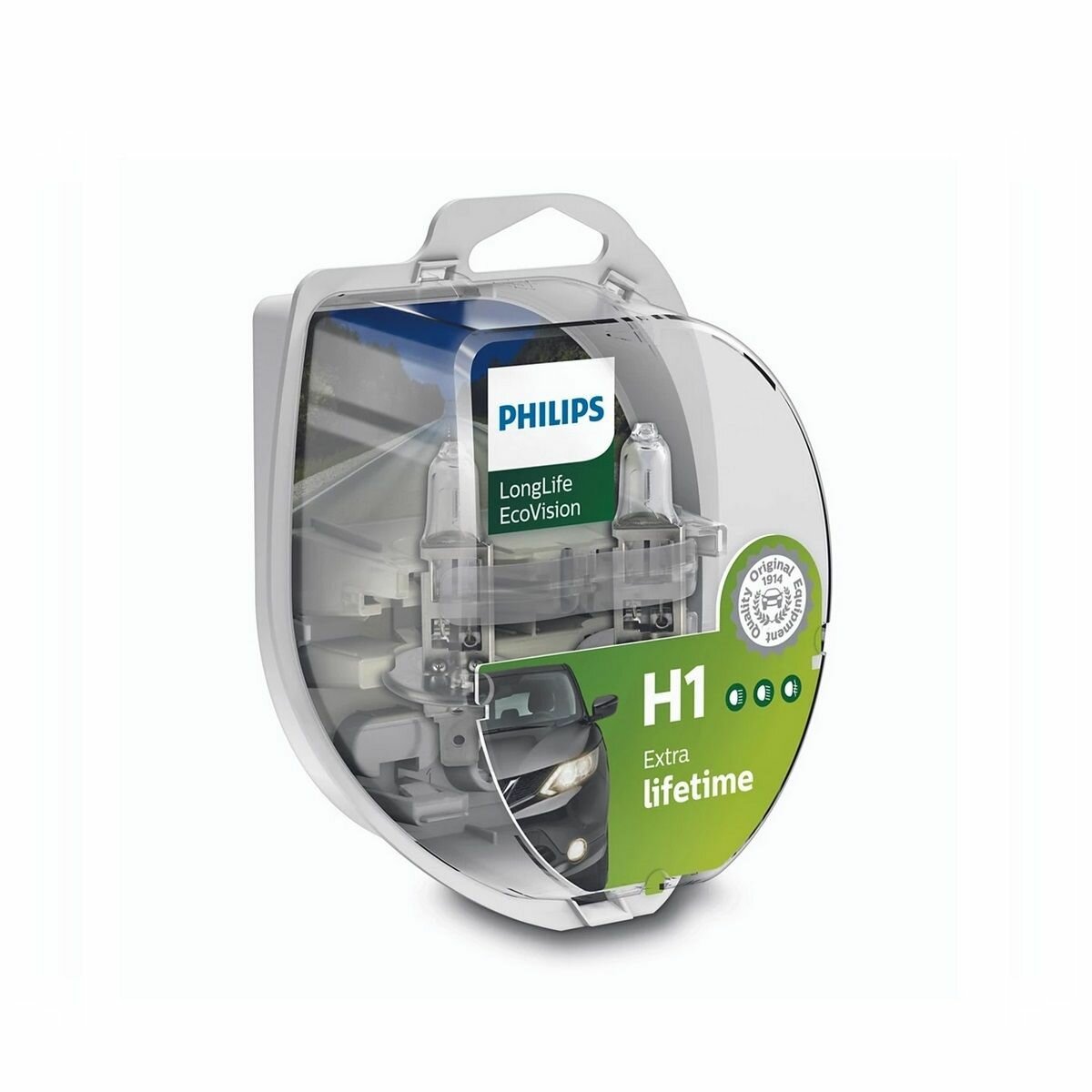 10 цен на Лампа галогеновая головного света H1 P14.5s Long Life Eco Vision Philips 12258LLECOS2, 2 шт.