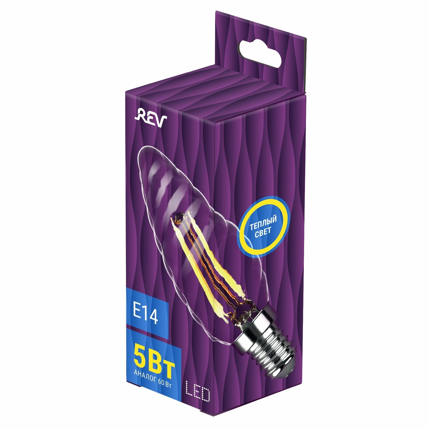 Лампа светодиодная филаментная REV TC37 E14 5W 2700K DECO Premium свеча на ветру 32430 0