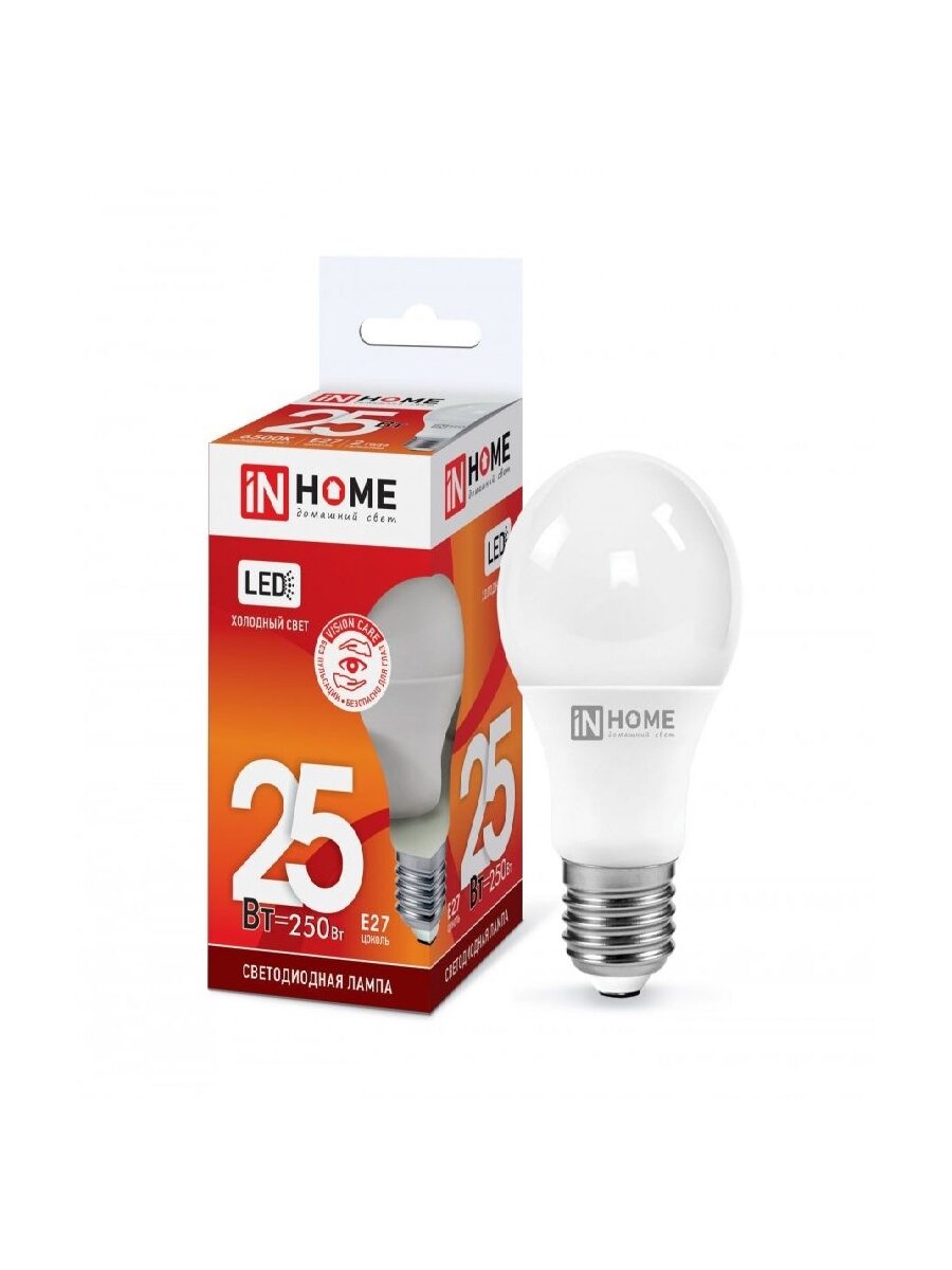 10 цен на (3 шт.) Светодиодная лампочка ASD/inHome VC ЛОН A65 E27 25W(2250lm) 6500К 6K 135x65 (без пульсации) 4103 Холодный белый. Цоколь E27