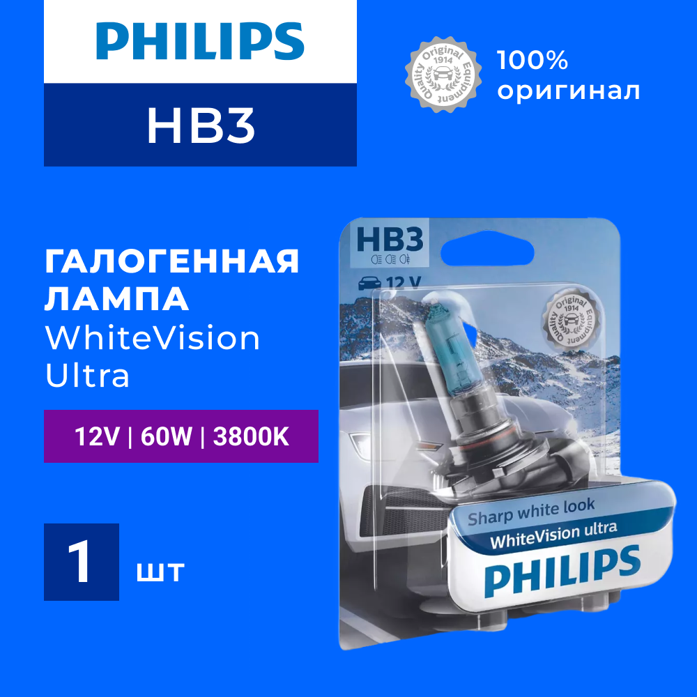Лампа Hb3 Whitevision Ultra 60W 12V P20d Блистер 1Шт Philips арт. 9005WVUB1