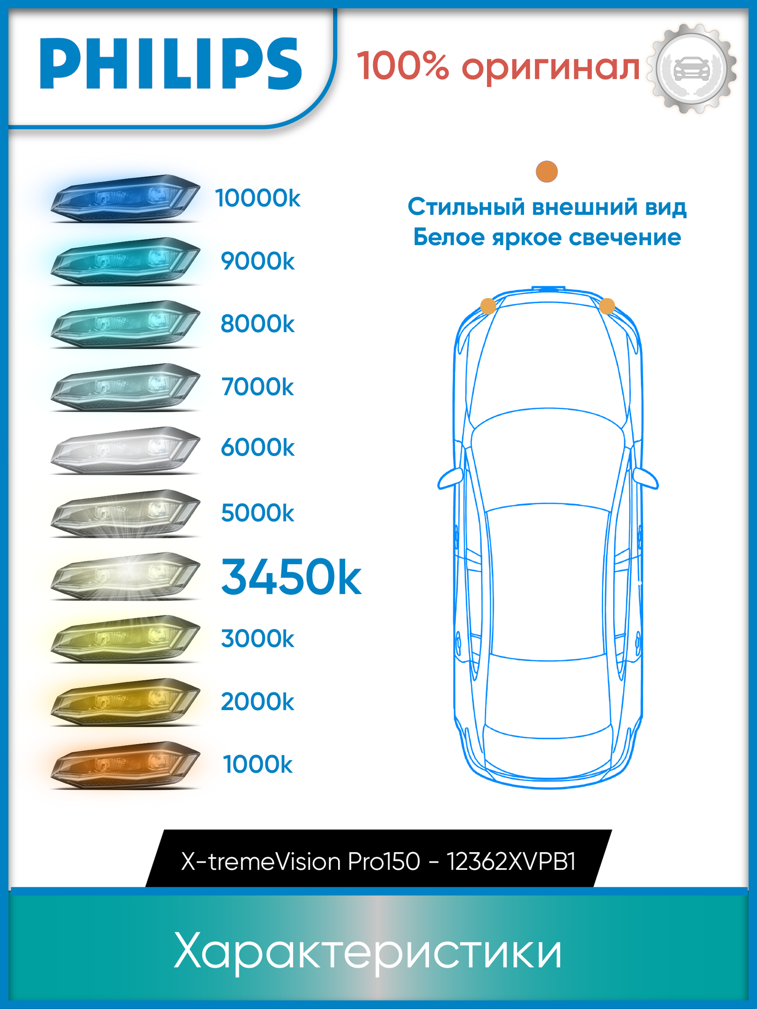 PHILIPS лампа H11 X-TREME VISION PRO150 B1 12362XVPB1, 1шт