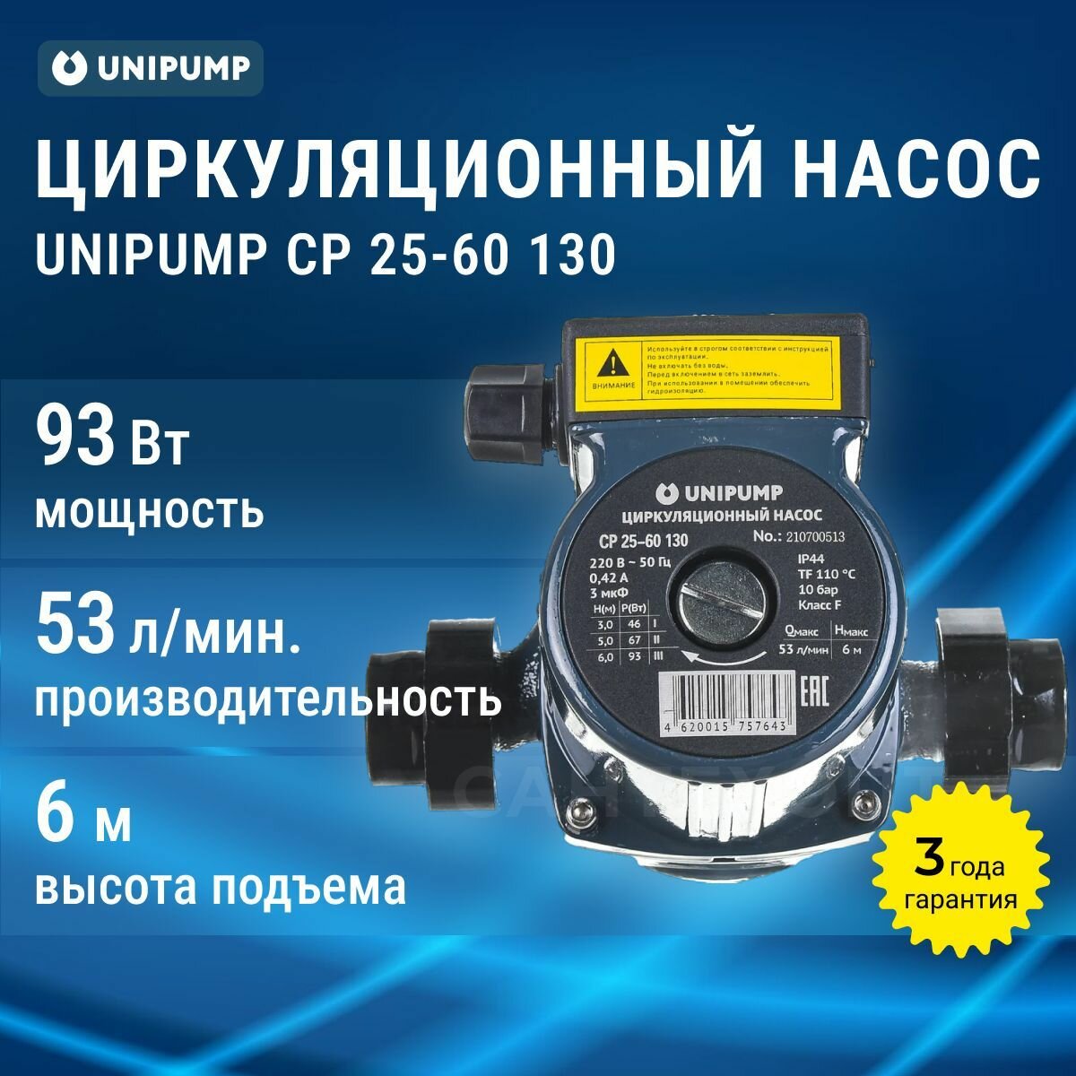 Отзывы на Насос циркуляционный UNIPUMP СР 25-60 130, чугунный корпус, мощность 93Вт
