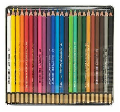 Набор акварельных карандашей Mondeluz Koh-i-noor, 24 цвета, в жестяном пенале