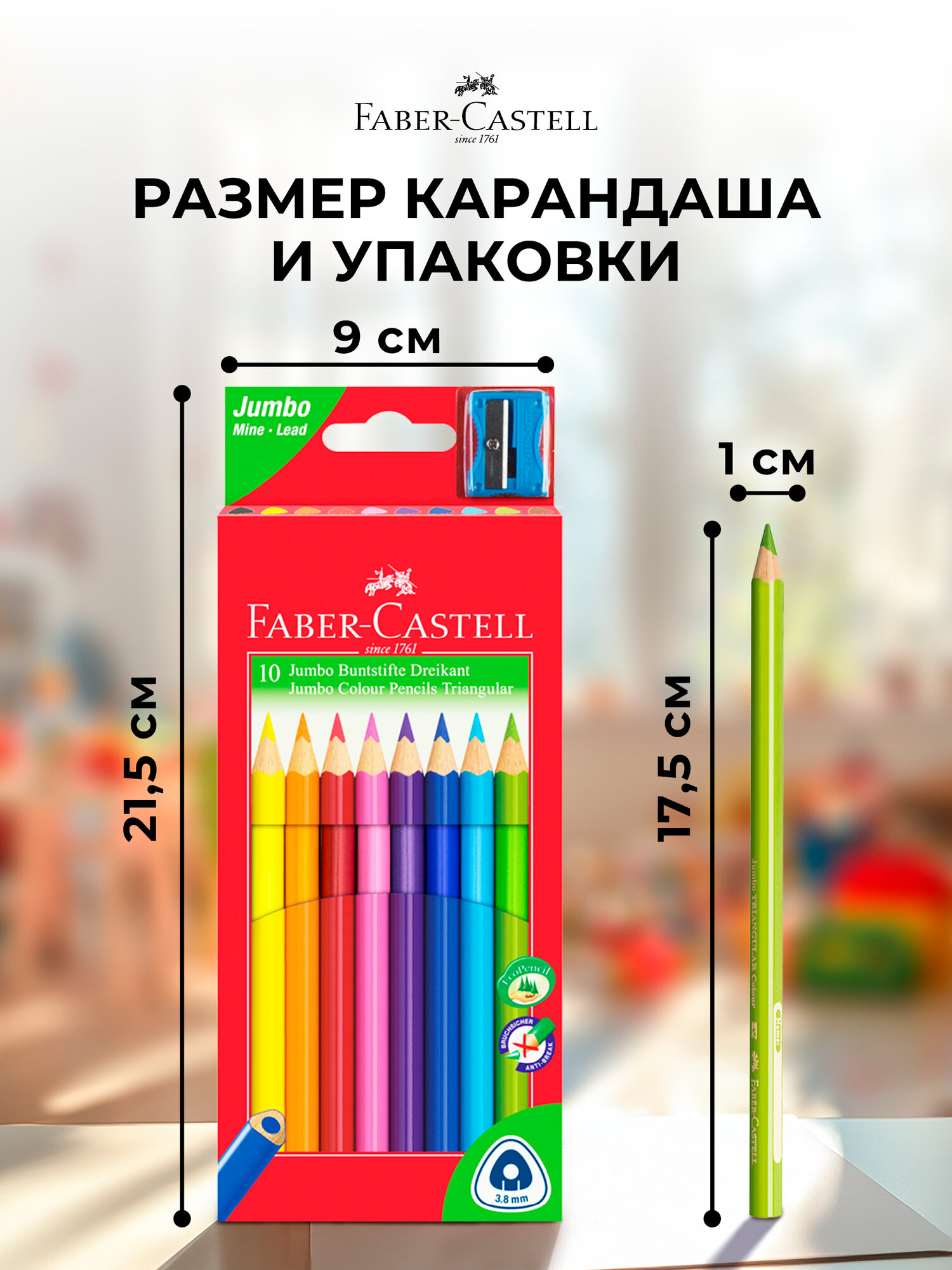 Карандаши цветные Faber-Castell "Jumbo" 10цв, трехгран, заточен, с точилкой информация: