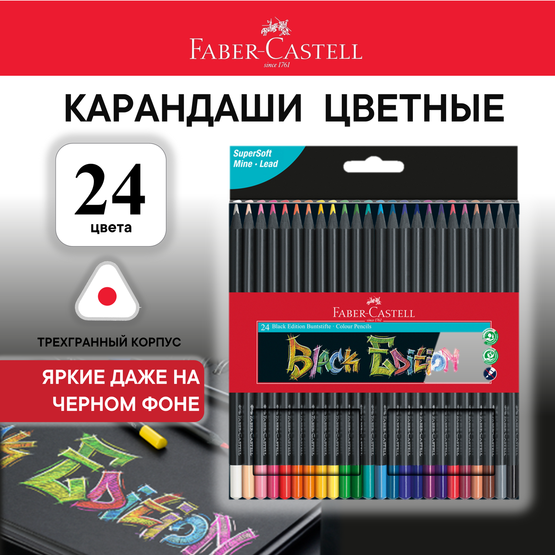 Отзывы на Карандаши цветные Faber-Castell "Black Edition", 24цв, трехгран, черное дерево, заточен.
