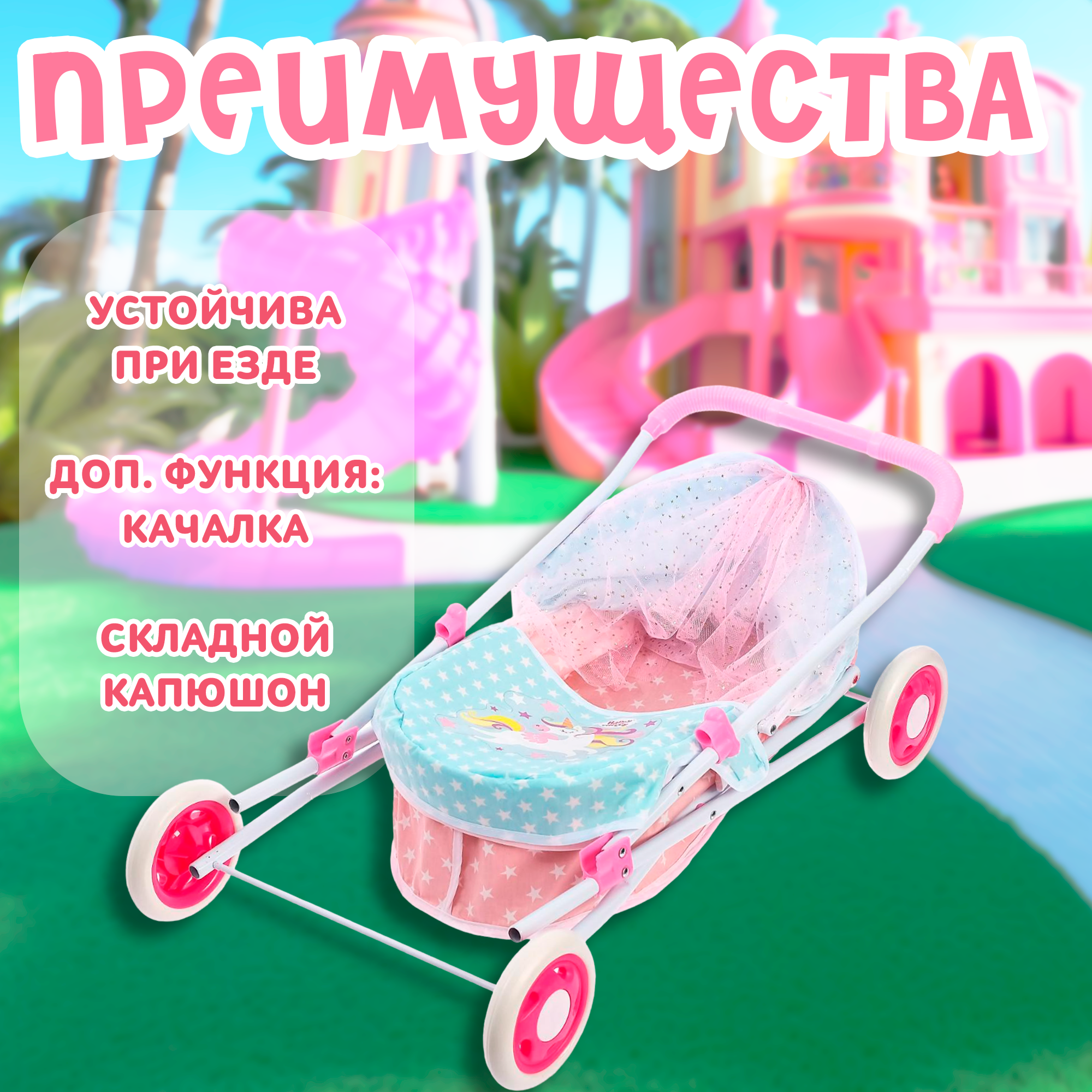 Отзывы на Коляска для кукол Happy Valley Звезда, для девочек, с люлькой, бежево-бирюзовая