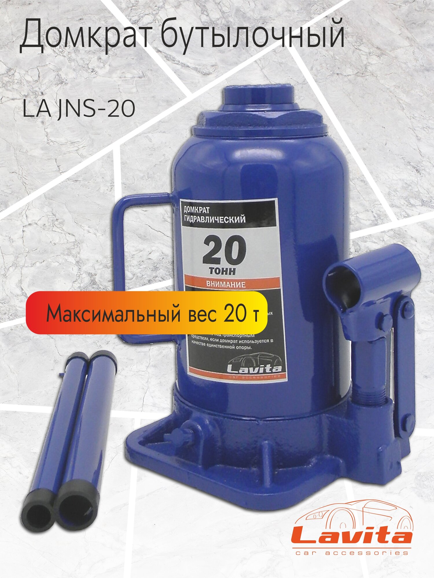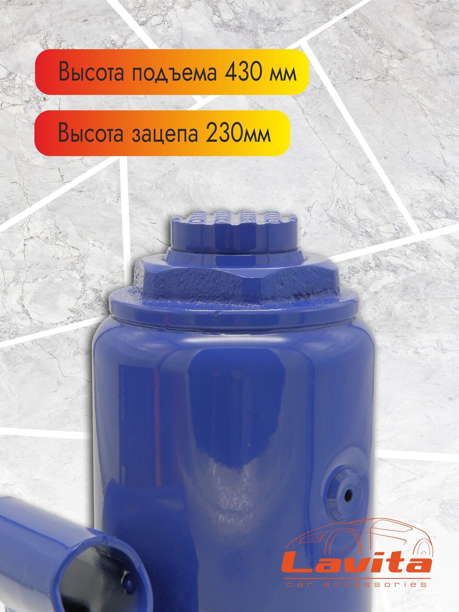 Домкрат гидравлический бутылочный Lavita, 20Т (230-430 мм) в картонной упаковке информация: