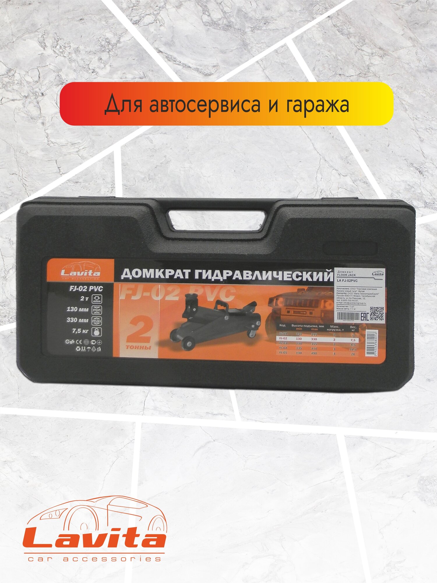 Домкрат гидравлический подкатной Lavita, 2Т (130-330 мм) в пластиковом кейсе информация: