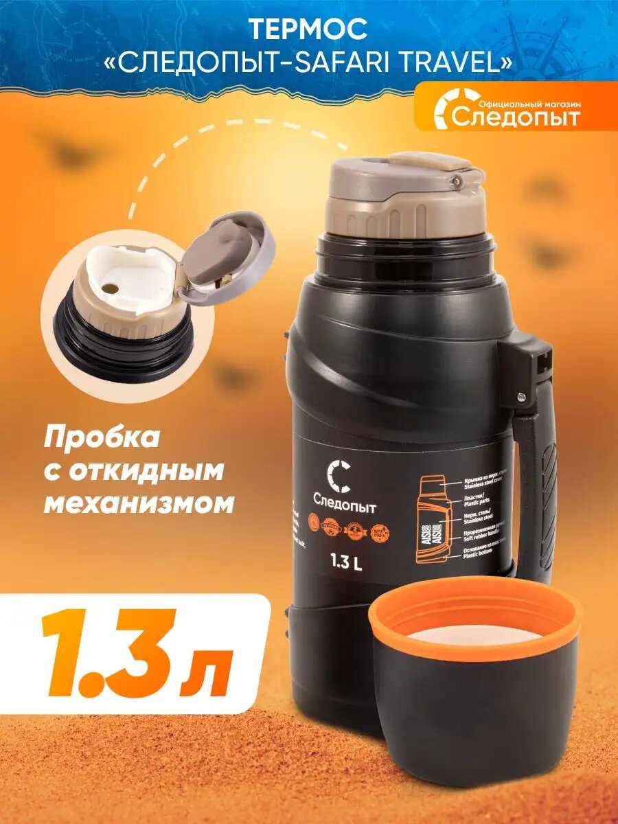 Термос "Следопыт SAFARI TRAVEL" из нержавеющей стали, объем 1,3 литра 2 294 ₽