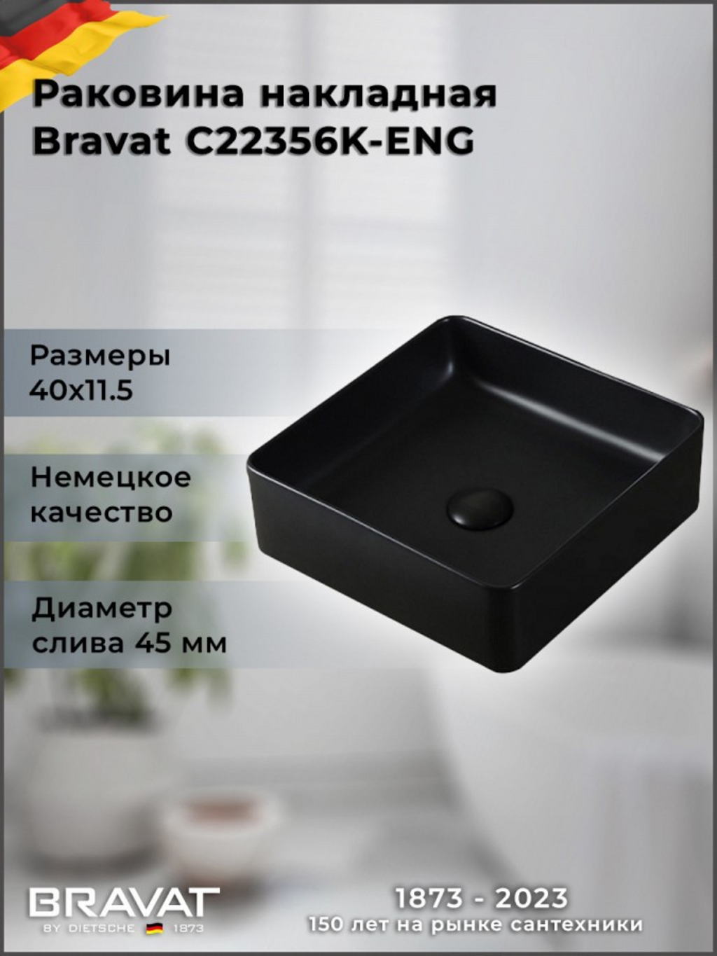10 цен на Раковина BRAVAT, накладная установка, квадратная, фарфор, черная