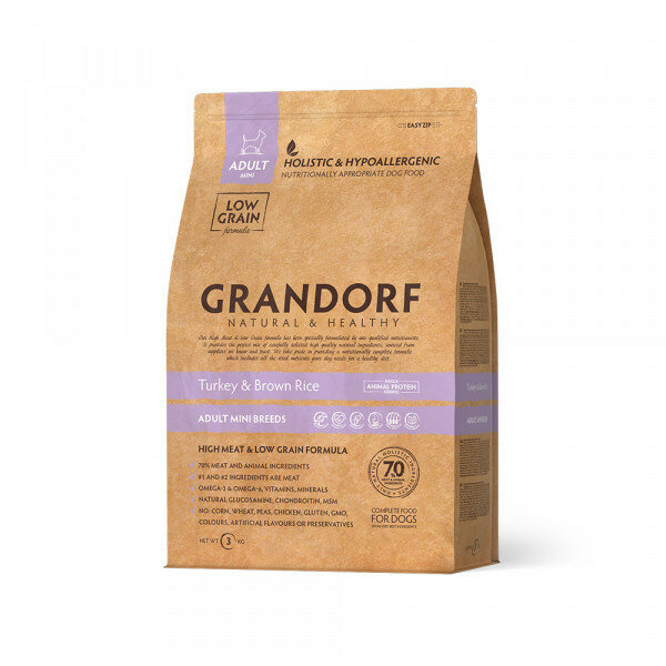 GRANDORF SINGLE GRAIN DOG ADULT MINI TURKEY низкозерновой для взрослых собак маленьких пород с индейкой (3 кг)
