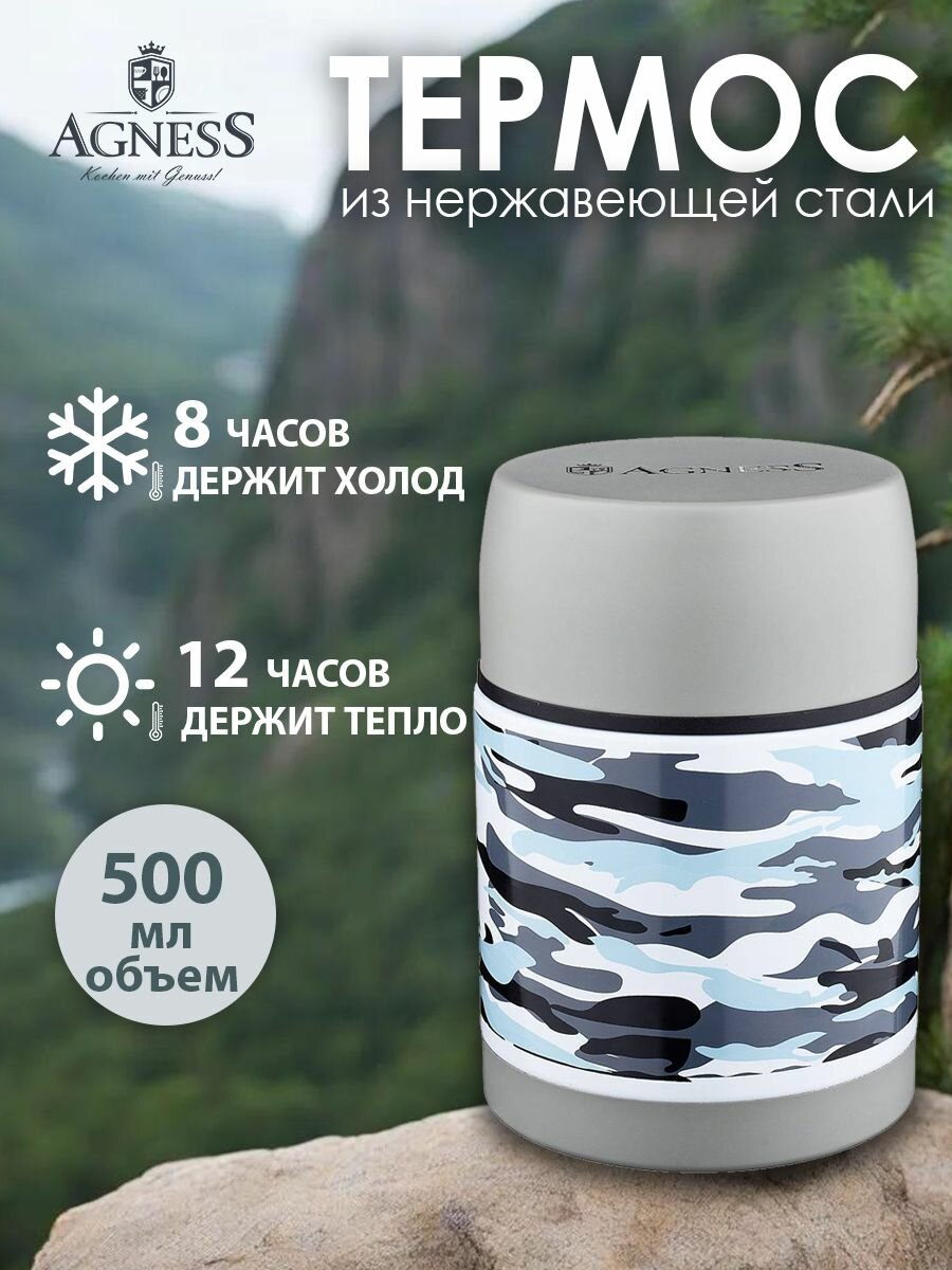 Термос Agness с широким горлом 500 мл, колба нержавеющая сталь информация: