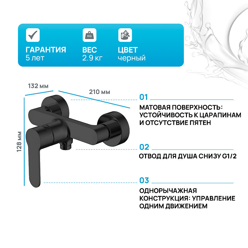 Смеситель для душа Aquanet af300-30b Черный 5 270 ₽