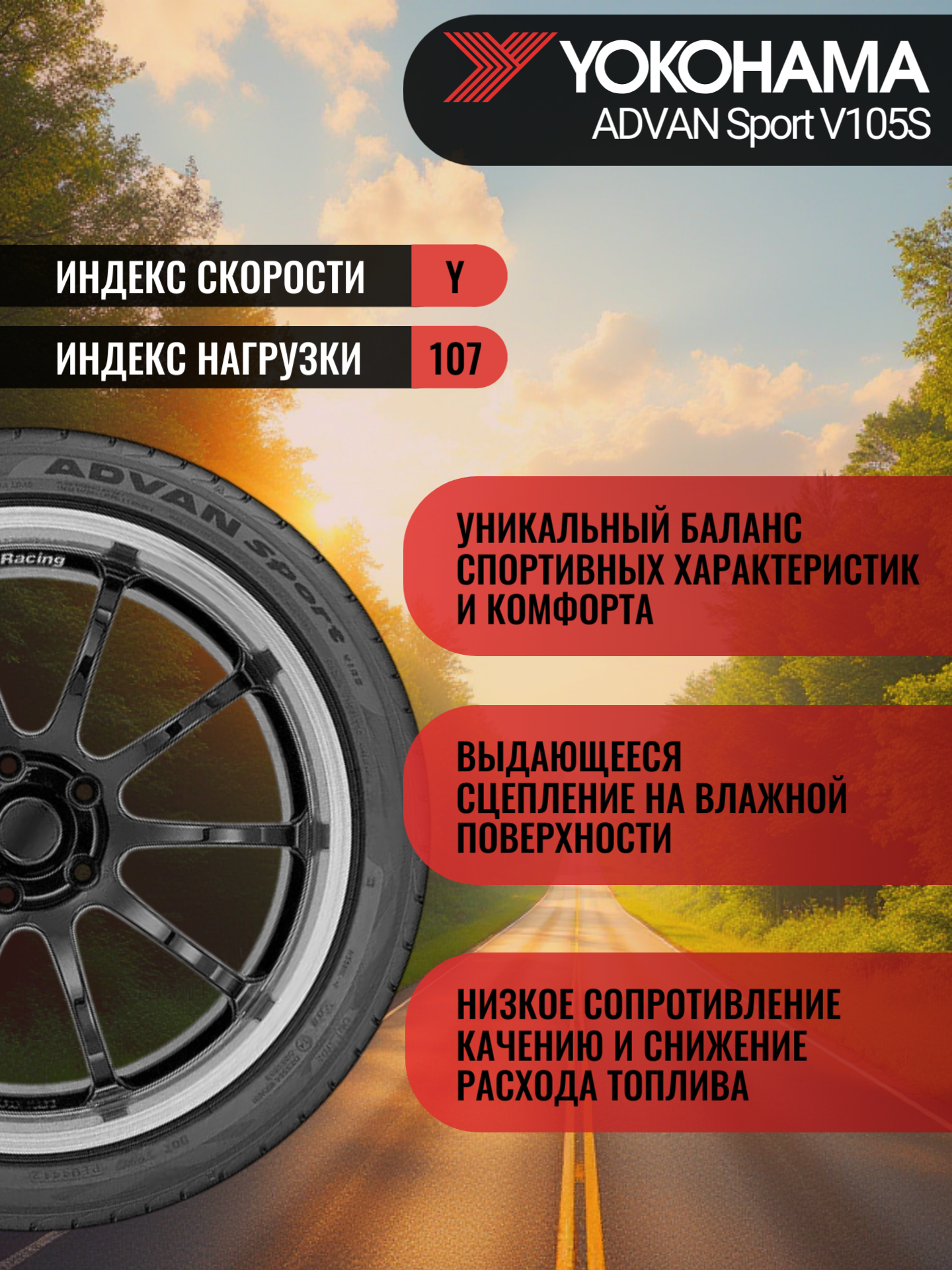 Автомобильные шины Yokohama Advan Sport V105S 215/45 R17 91Y 9 970 ₽