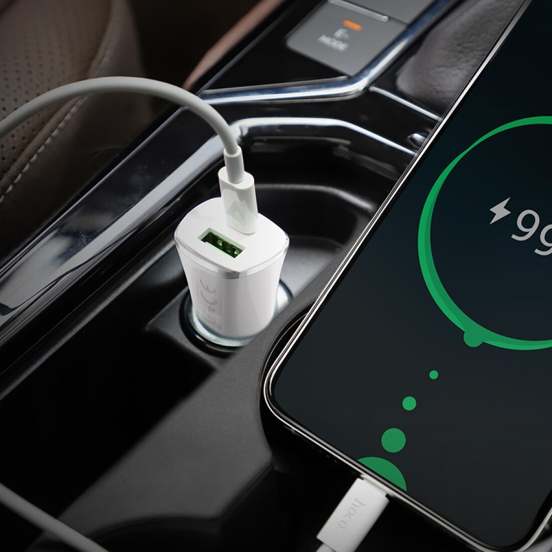 Автомобильное зарядное устройство, 1 USB QC3.0+1 PD (Z31A), HOCO, кабель Type-С to Lightning, белый информация: