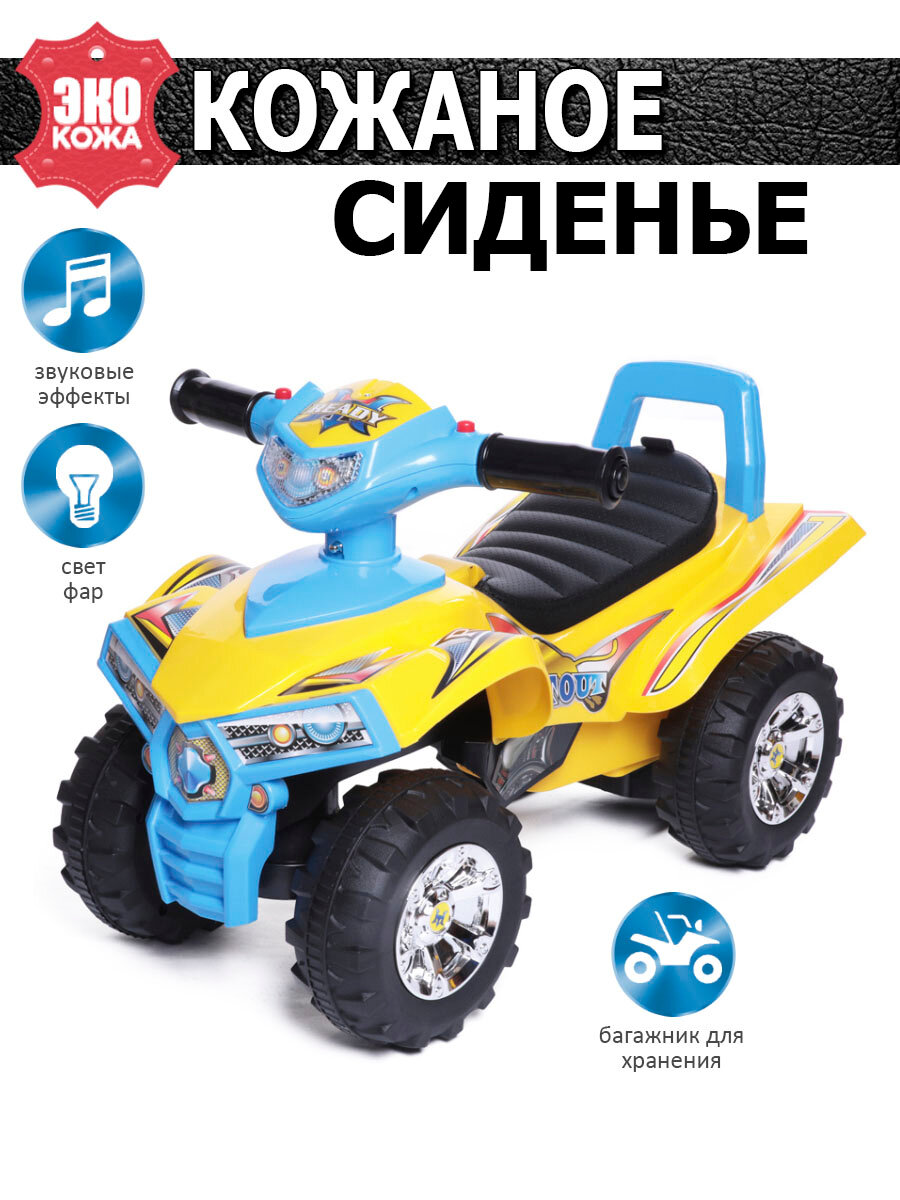 Пушкар каталка детская Super ATV BabyCare, кожаное сиденье, желто-синяя 3 890 ₽
