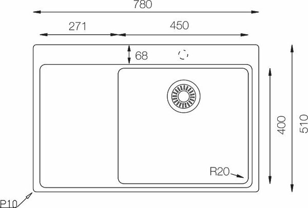 Мойка FABIA 62322L сатин врезная 78х48 см левая + большой сифон с переливом