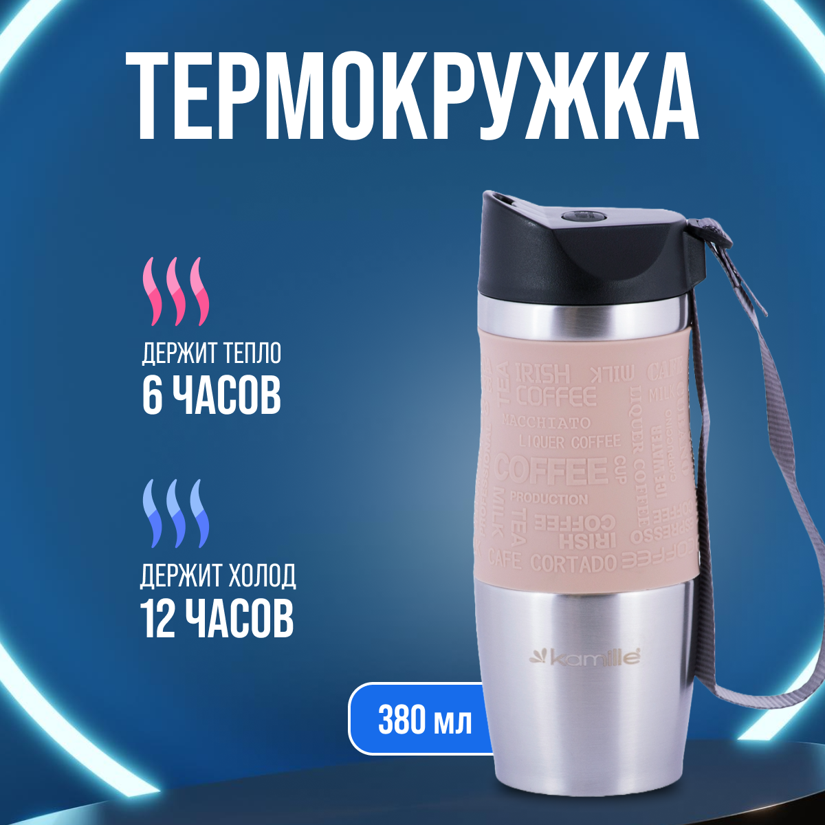 Термокружка с ремешком KAMILLE бежевая 380 мл информация: