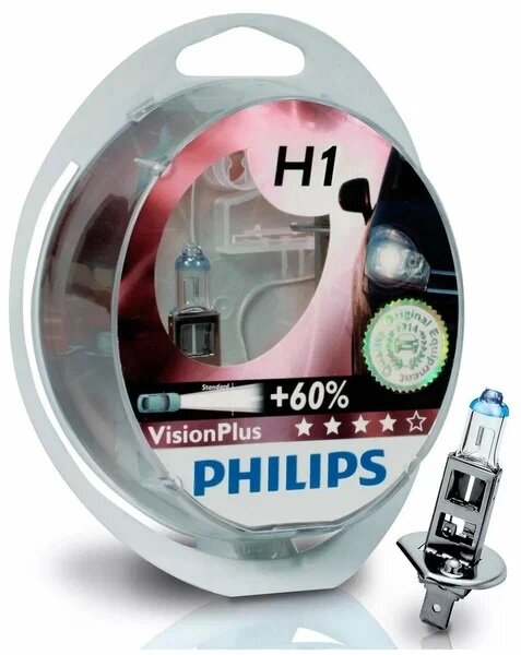Лампы H1 12V 55W +60% яркости VISION PLUS (box 2шт) PHILIPS 12258VPS2 информация: