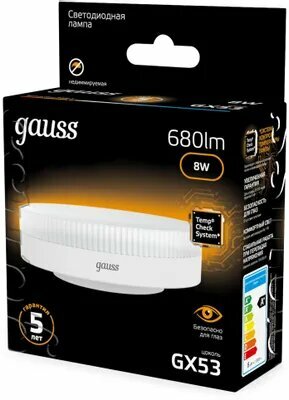 Лампа Gauss GX53 8W 680lm 3000K LED