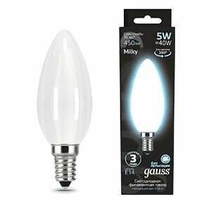 Отзывы на 30шт. Gauss Лампа Filament Свеча 5W 450lm 4100К Е14 milky LED, 103201205