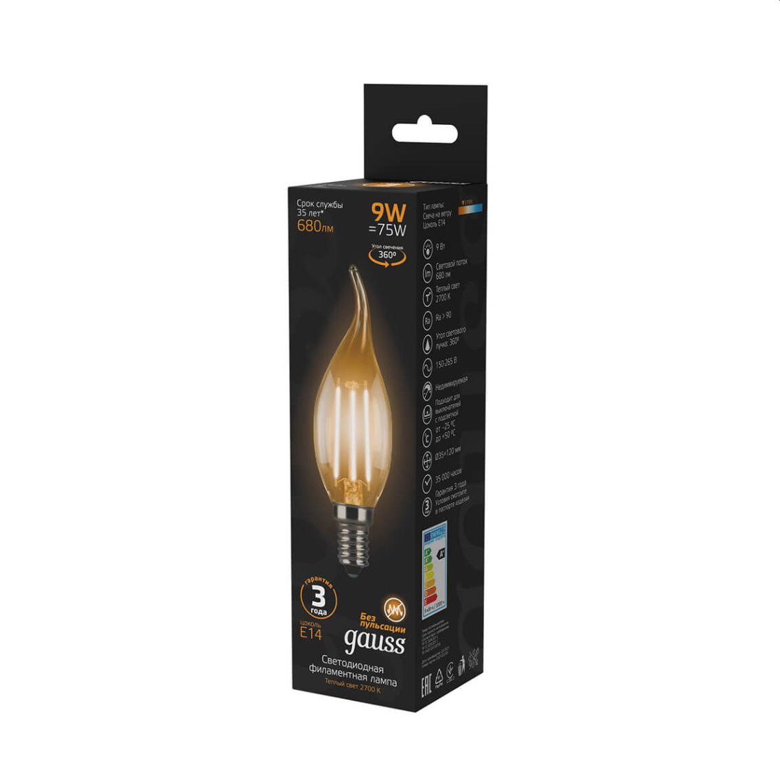 Лампа светодиодная Gauss Filament Свеча на ветру 9W 680lm 2700К Е14 LED информация: