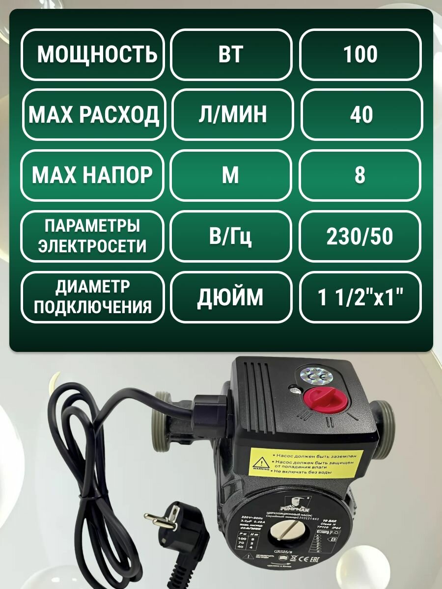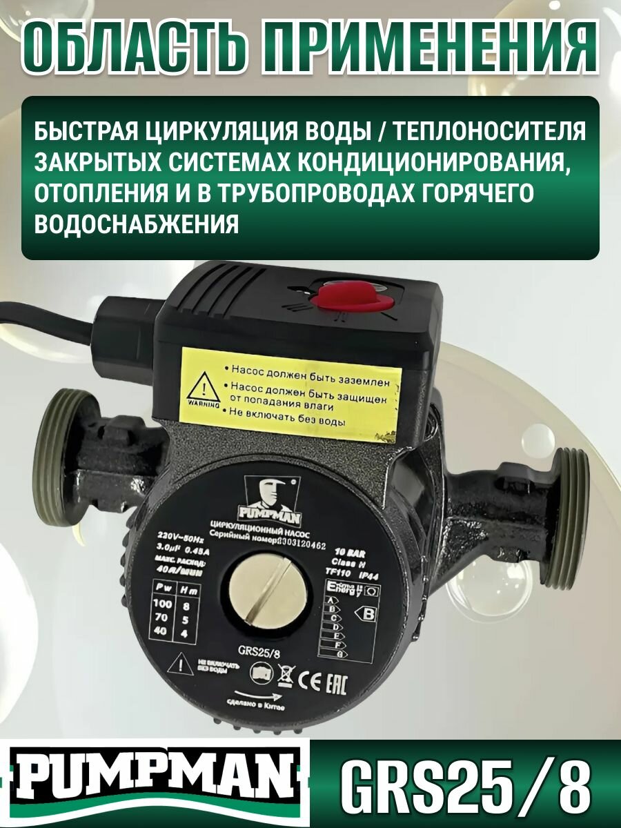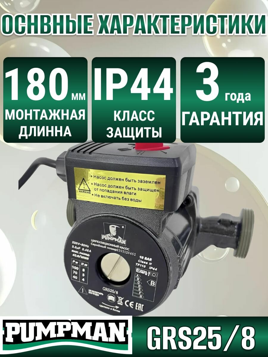 Отзывы на Циркуляционный насос Pumpman GRS25/8, для отопления, мощность 100Вт