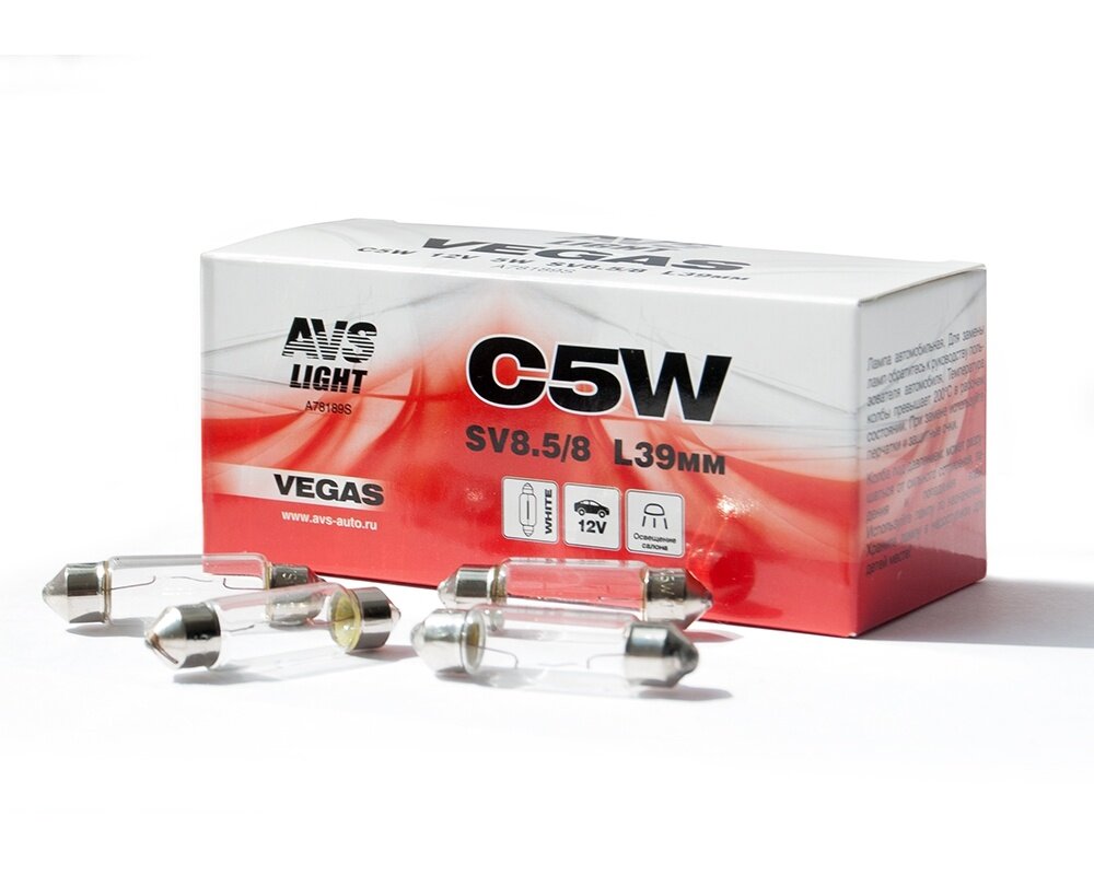 10 цен на Лампа AVS Vegas 12V. С5W SV8.5/8 L39мм. BOX 10 шт.