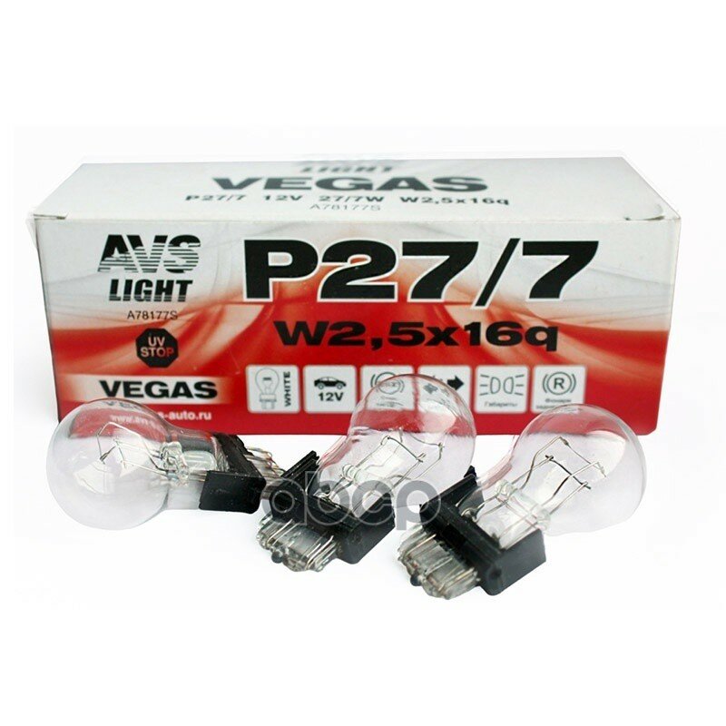10 цен на Лампа AVS Vegas 12V. P27/7 W2,5x16q BOX 10 шт.