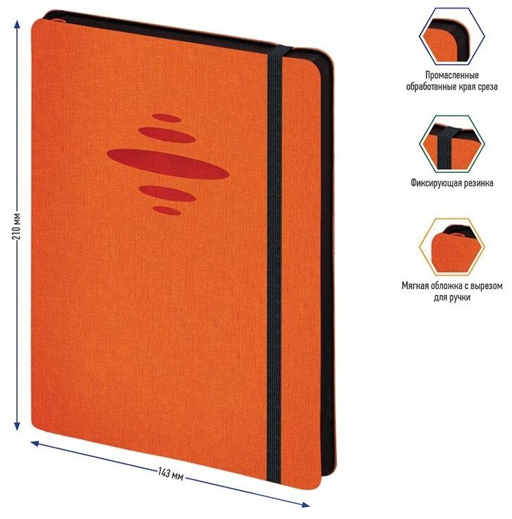1 шт - Ежедневник недатированный, А5, 136л., кожзам, Berlingo "Color Zone", черн. срез, с резинкой, оранжевый 1 250 ₽