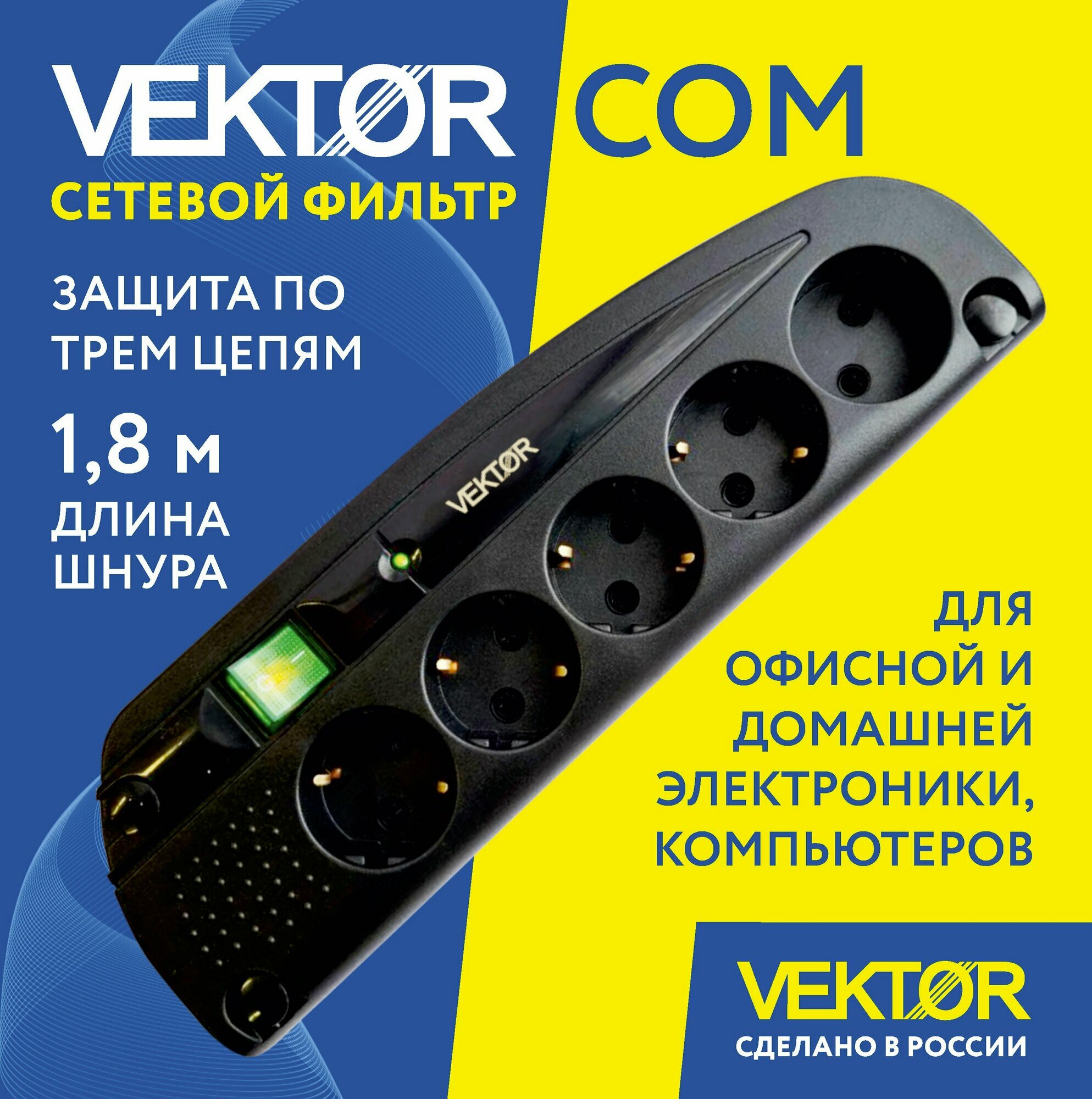 10 цен на Сетевой фильтр Vektor COM, 5 розеток, черный 1.8м, компьютерный