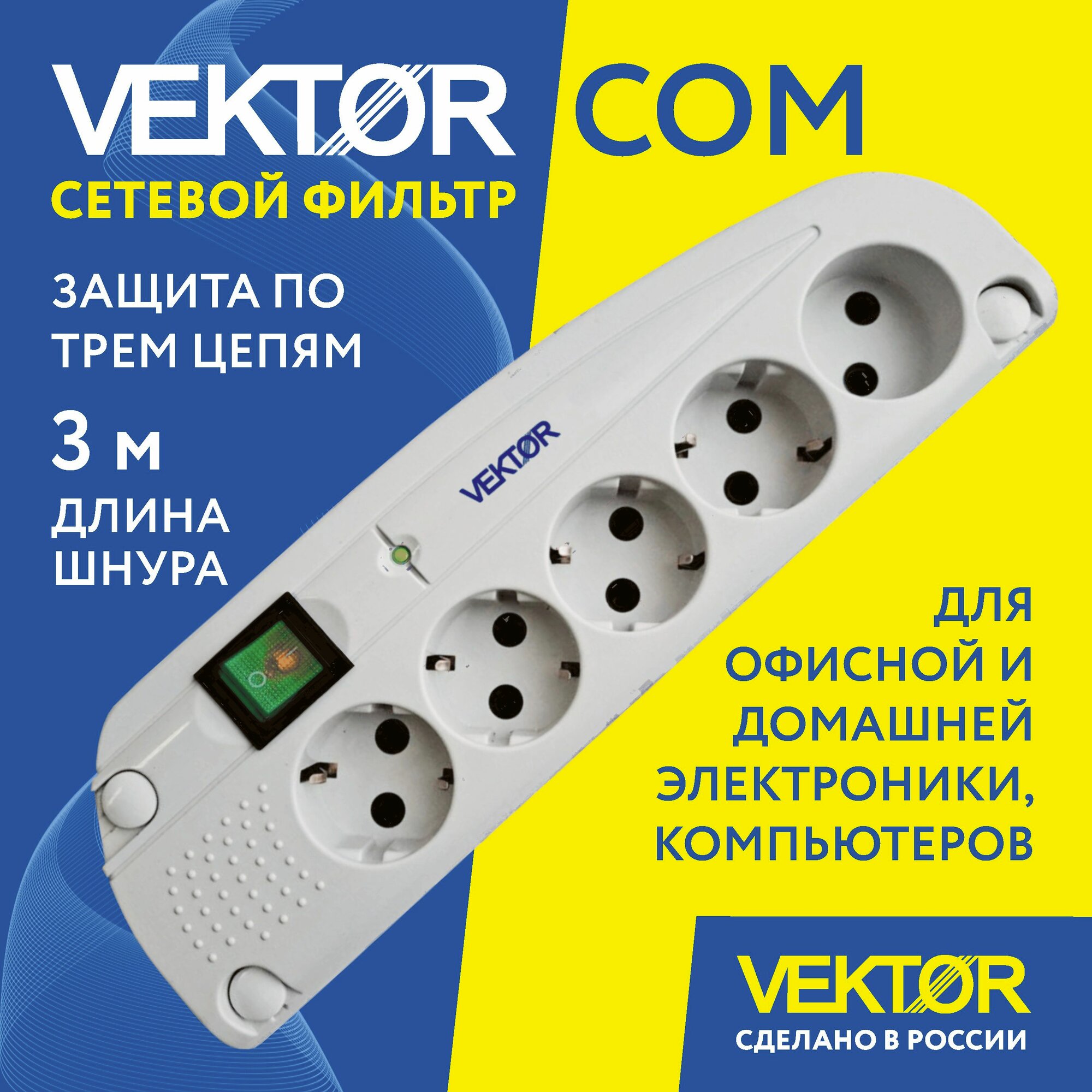 10 цен на Сетевой фильтр Vektor COM, белый, 3м, компьютерный, мощность 2200 Вт