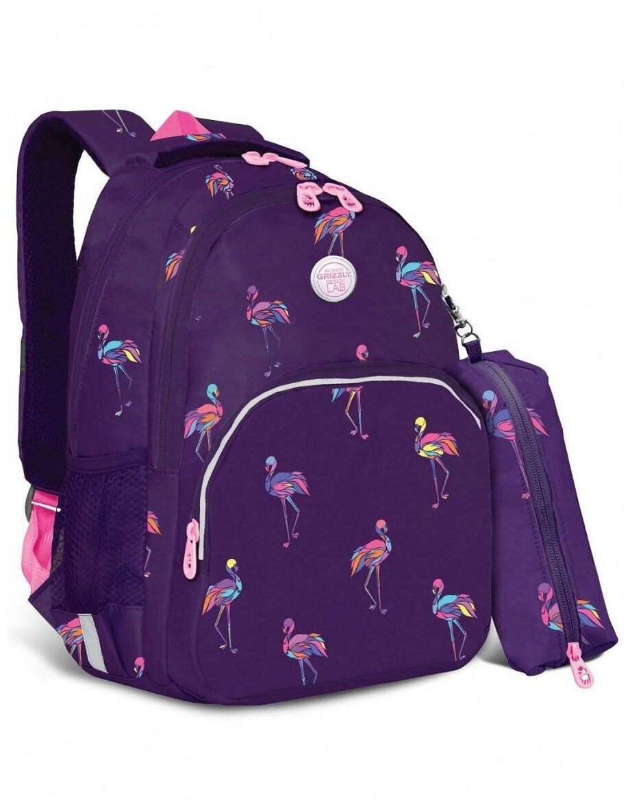 10 цен на Рюкзак школьный GRIZZLY RG-260-4 Фламинго , грудная стяжка, 2 отделения, 40x27x20см