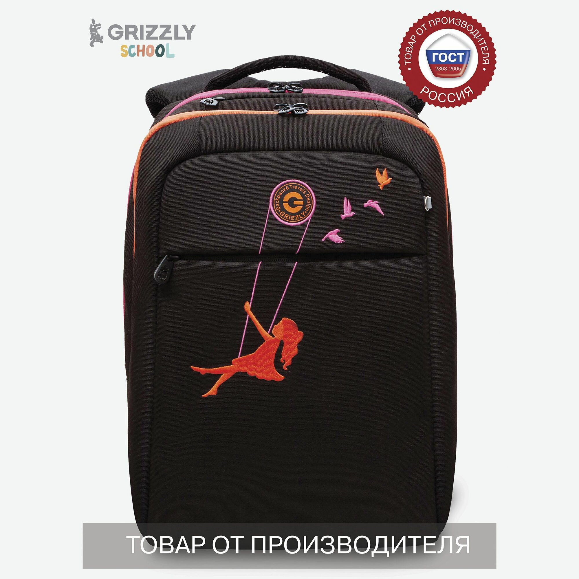 Рюкзак школьный для девочки Grizzly с анатомической спинкой RD-344-2 информация: